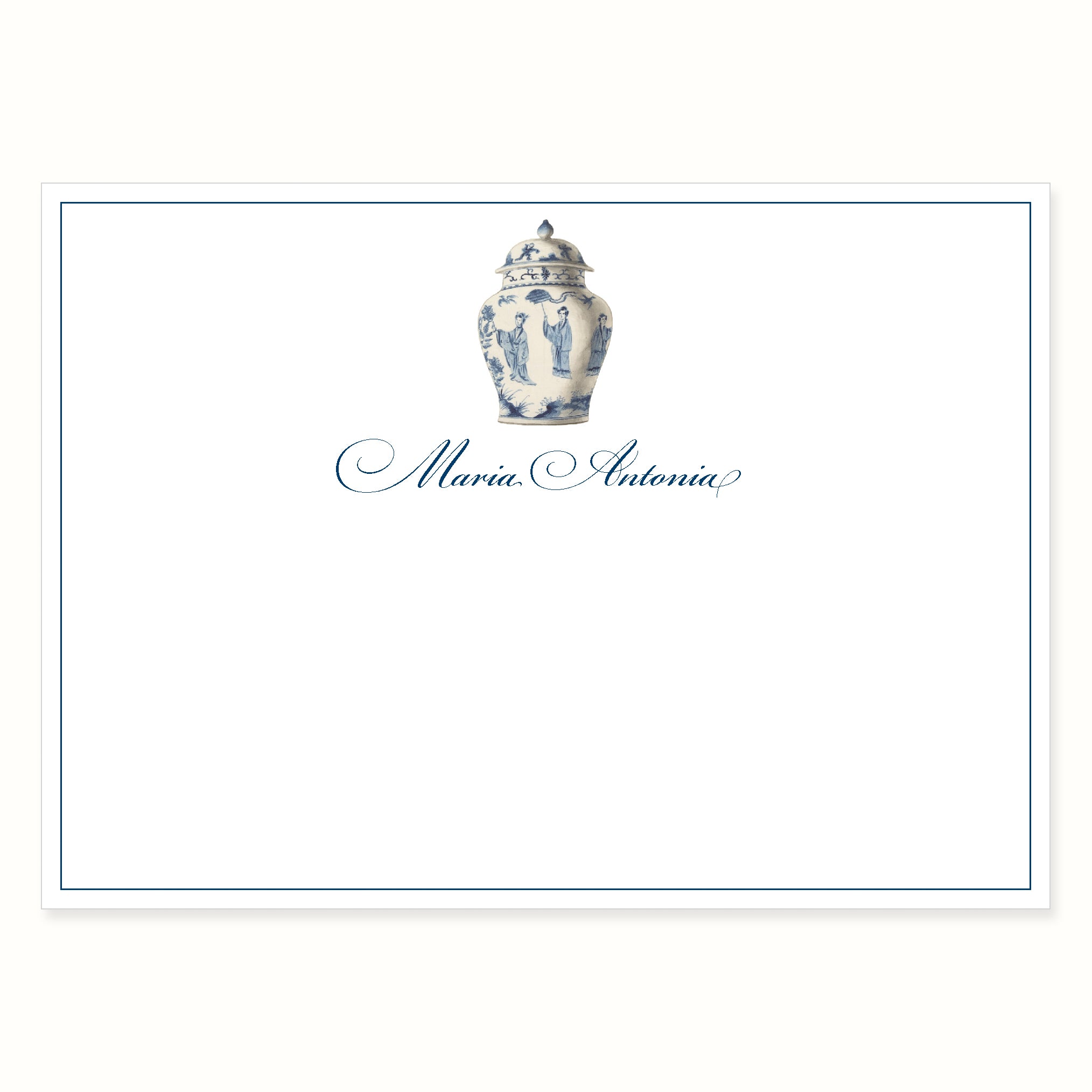 A classic blue and white Ginger Jar personalized with your name. Cards measure 4.5" x 6.25" and are printed on white 110 lb. paper. Each comes with a corresponding envelope. Sold in sets of 25.