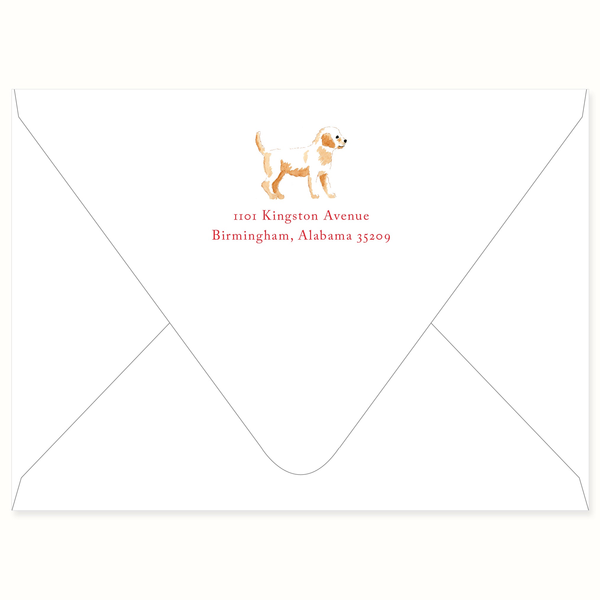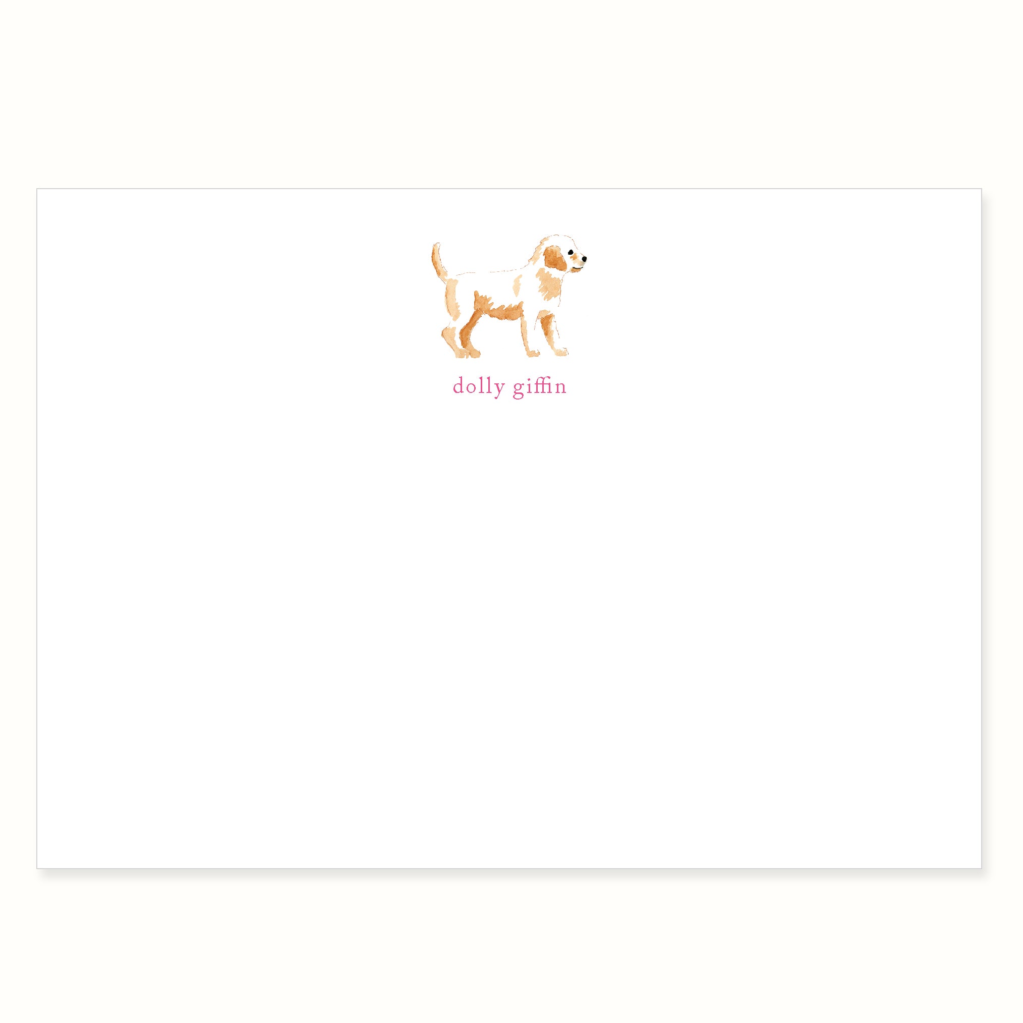 As seen in Emily Giffin’s bag! A watercolor puppy by artist Susan Clanton personalized with your child's name in red or hot pink. Cards measure 4.5" x 6.25" and are printed on white 110 lb. paper. Each comes with a corresponding envelope. Sold in sets of 25.